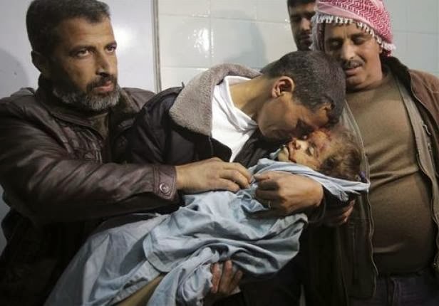 "In one short piece you can’t deconstruct every damn Zionist lie but there are some too egregious to ignore. This photo is a Gazan man holding the body of his 3-year-old niece, Hala Abu Sebakha who was killed by shrapnel from one of several Israeli air strikes on Christmas Eve & Christmas Day. The Israeli military claimed the bombing across Gaza targeted a weapons manufacturing facility, a concealed rocket launcher, & Gaza’s “terror infrastructure” & were retaliation for the fatal shooting by a Palestinian sniper of an Israeli civilian doing maintenance on the barrier wall. Of course Israel & media neglect to mention that the shooting of the maintenance man on December 24th followed the murder of Gazan, Odeh Hamad by Israeli soldiers on December 20th. More importantly, doesn't it constitute criminal insanity when you bomb an entire population for the alleged act of one rogue sniper?